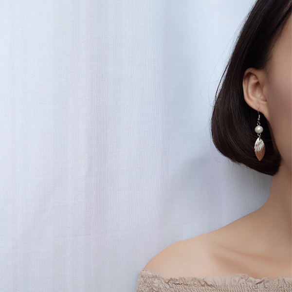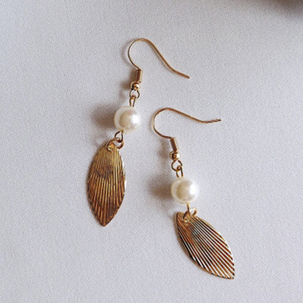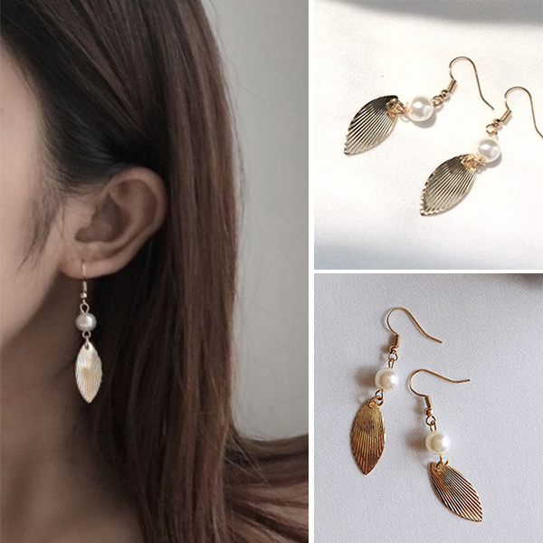 Retro Style Pearl Leaf Pendant Earrings