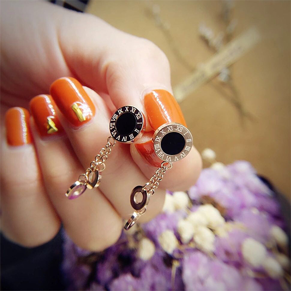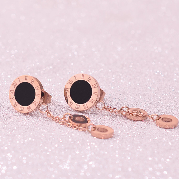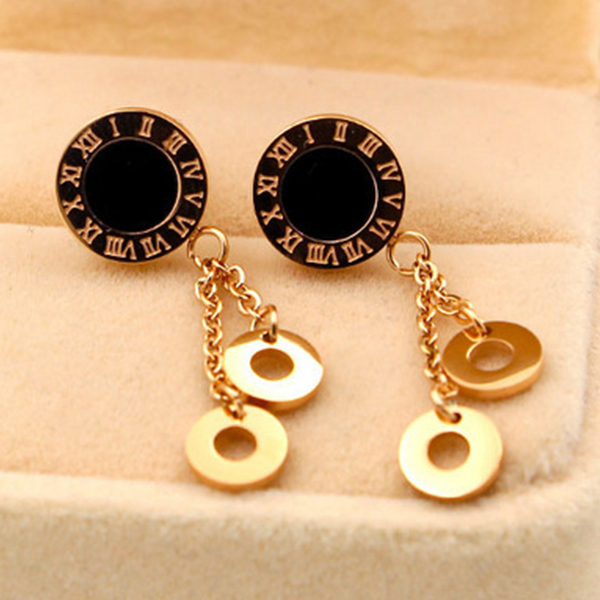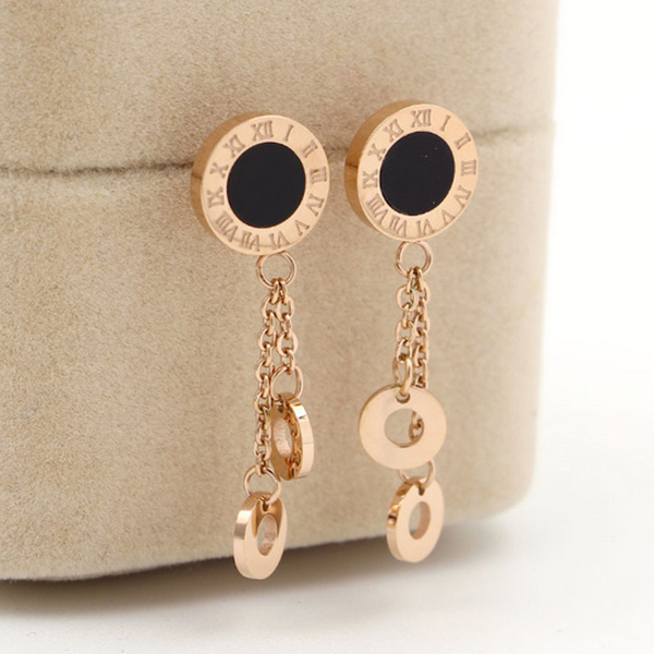 Retro Style Round Tassel Pendant Carved Roman Numerals Round Stud Dangle Earring
