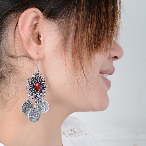 Insert a ruby making it look more eye-catching. Achieve a charming look with these drop earrings.