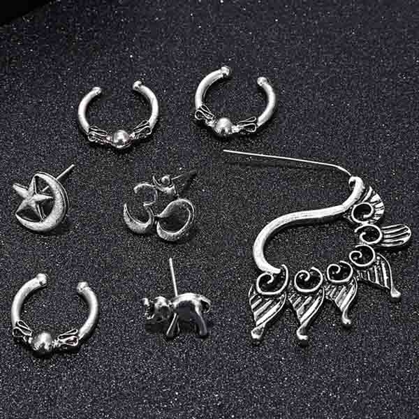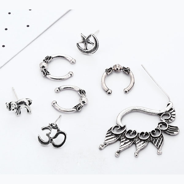 Retro Style Silver-Tone Stud Earring Set 7pcs/Set