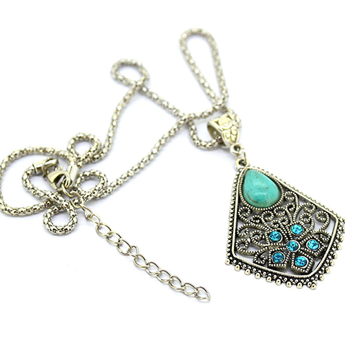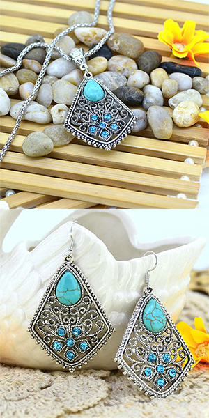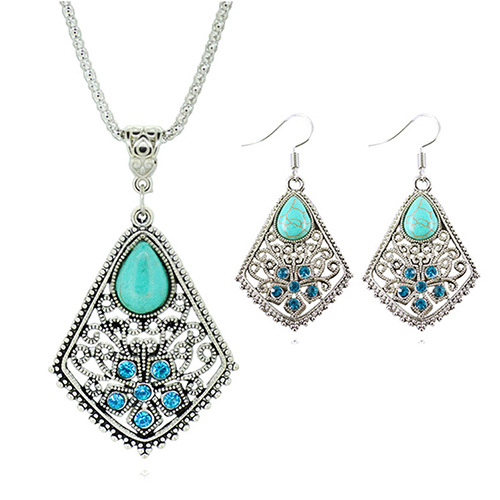 Retro Style Turquoise Water-drop Shaped Necklace + Earrings Set