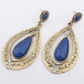 Gold plated earings with waterdrop shaped gemstone and rhinestone for decoration.