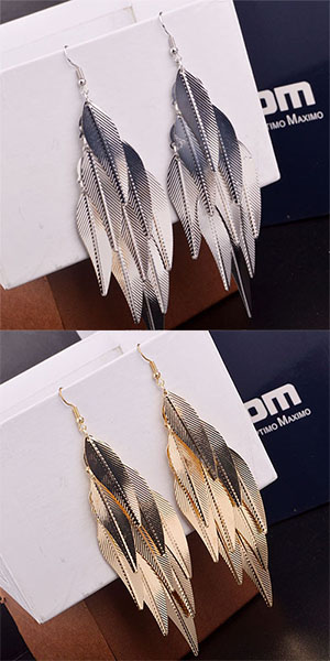 Catch their eye with the dramatic earrings! Willow leaves shaped earring,with two