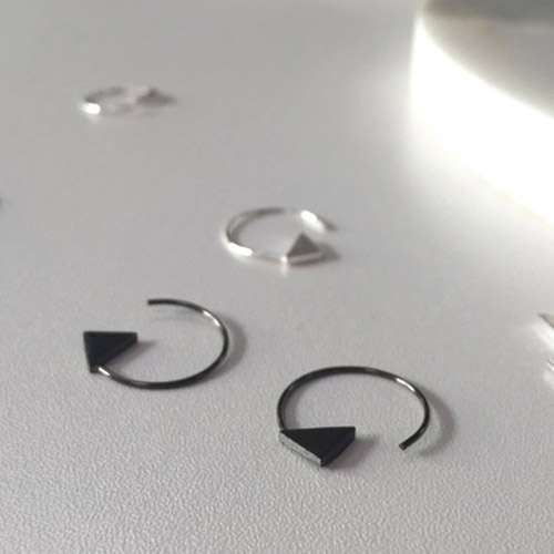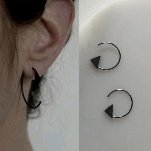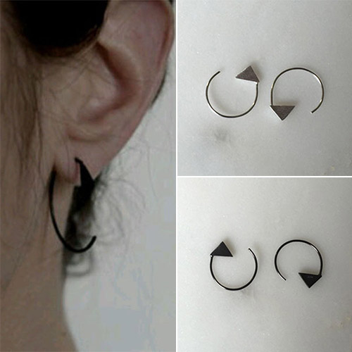 The earring is equipped with triangle shaped design, simple but stylish. These stud