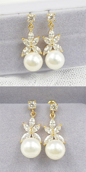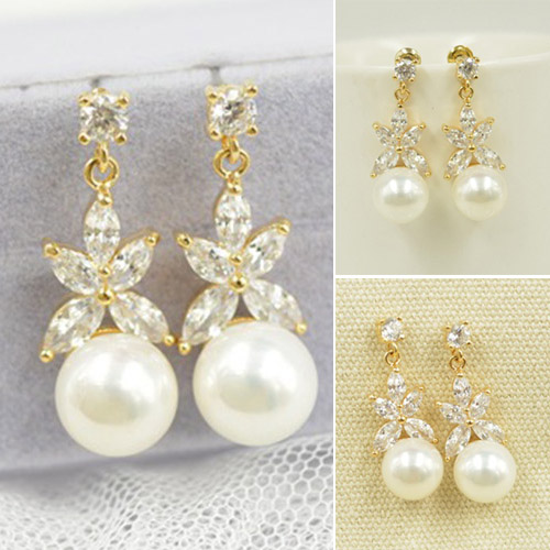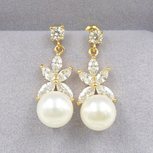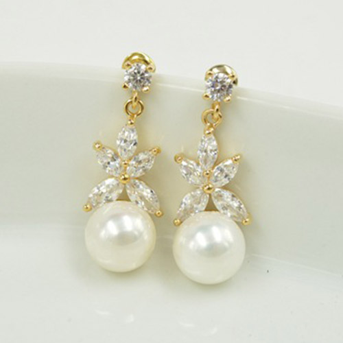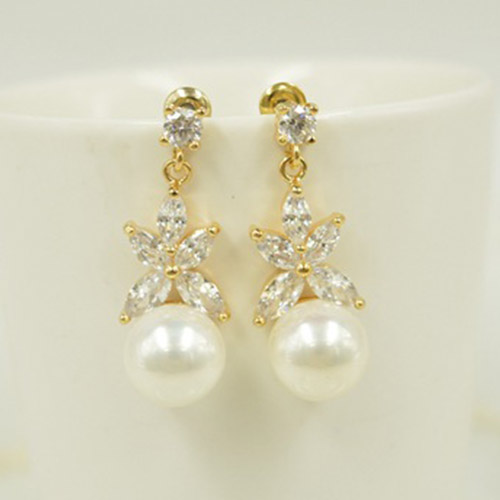 romantic earring. The earring is outfitted with zircon pearl and flower shaped design,