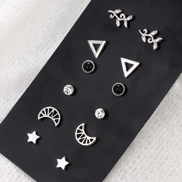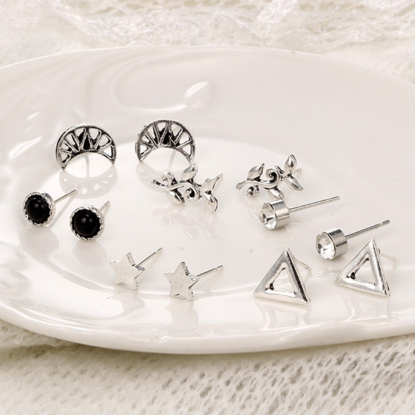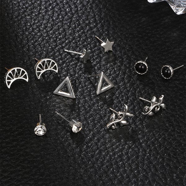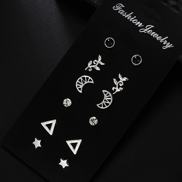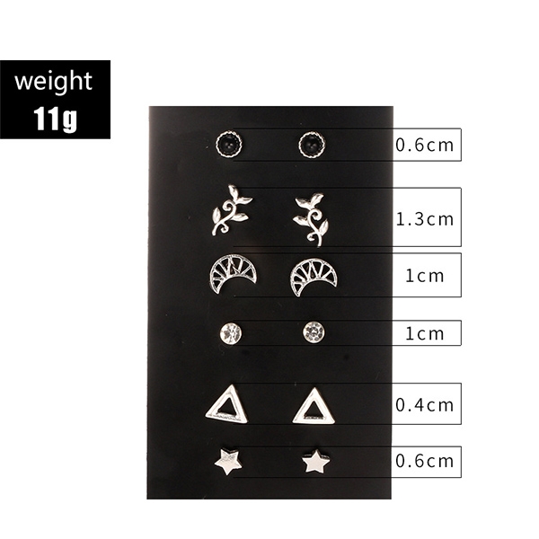 example. Including 6 pairs of different stud earrings,designed with crescent shape,leaf shape,