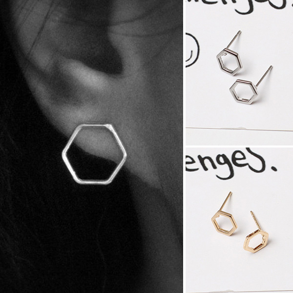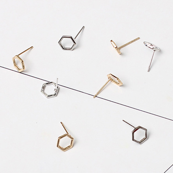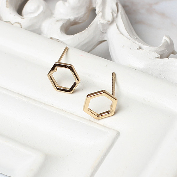 Simple Style Hexagon Shaped Alloy Stud Earrings