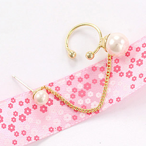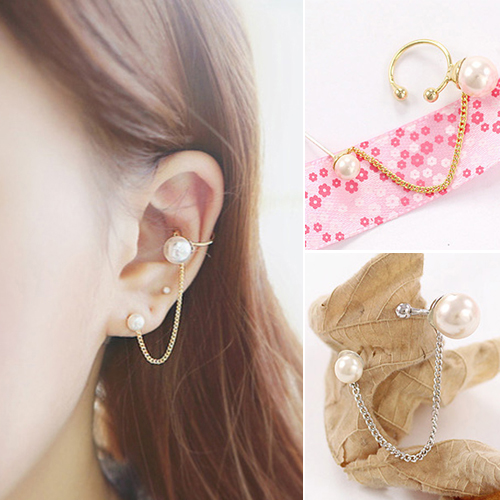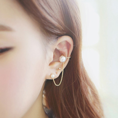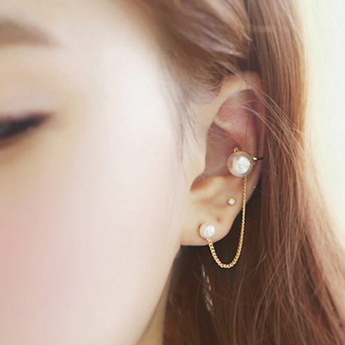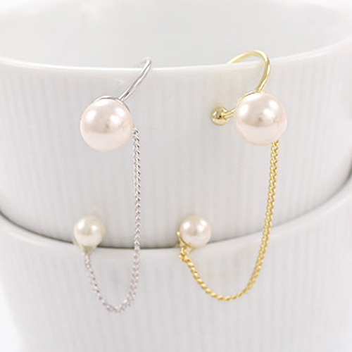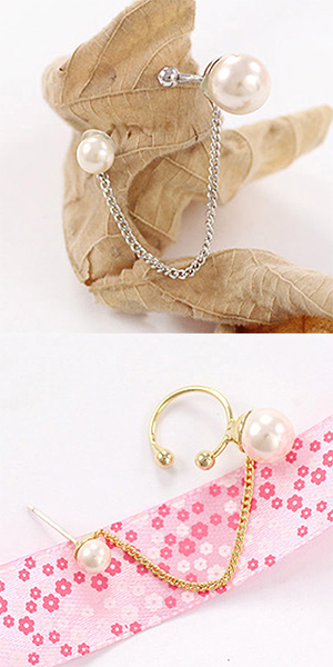 clips,too. There are two pearls on the long chain of this ear clips, which makes this simple ear