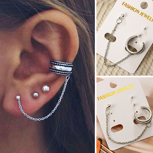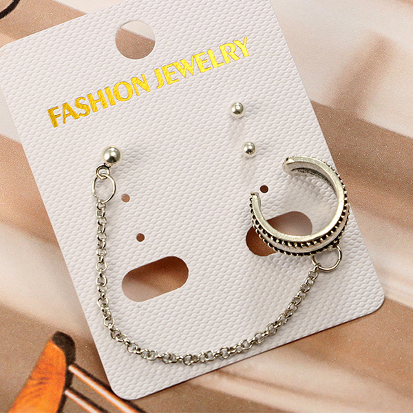 This earring set consists of a tassel earring and a pair of stud earrings,simple in design but filled with chic