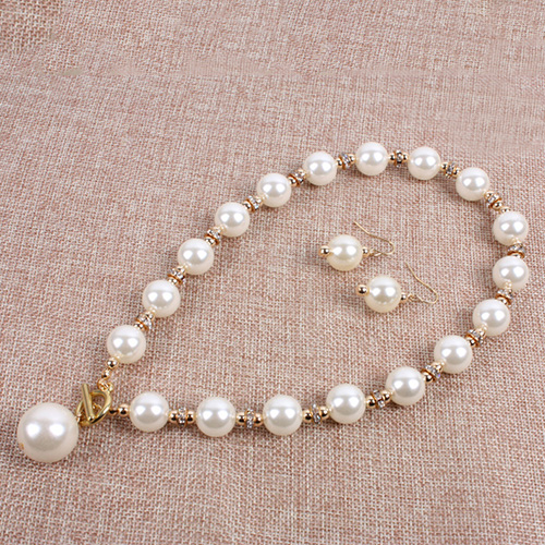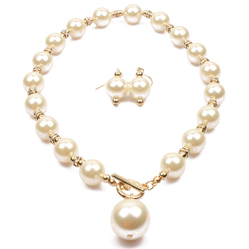 Splendid Pearl Earrings and Necklace Jewelry Set