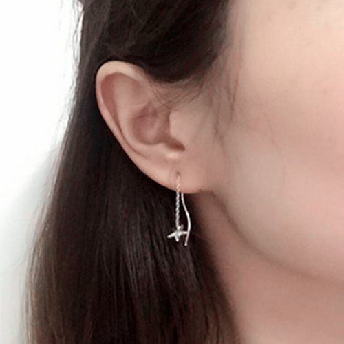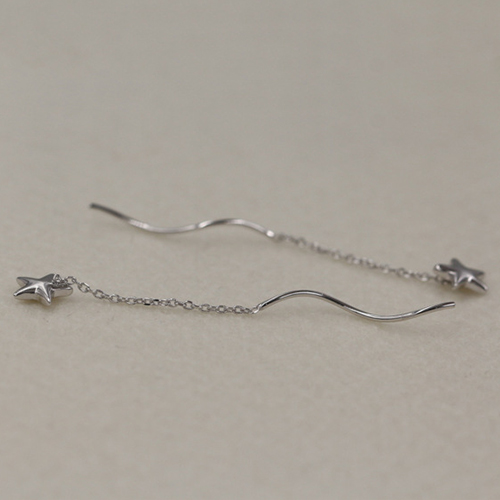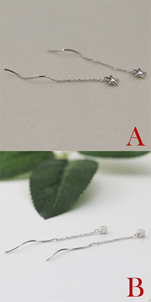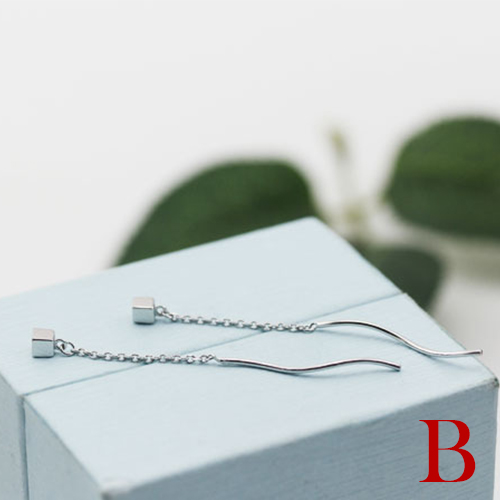 This pair of earrings is crafted from an alloy chain and a curved alloy bar. Moreover, this earrings