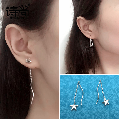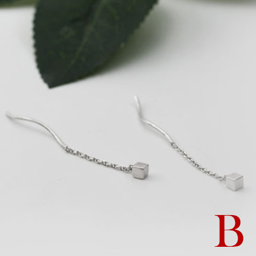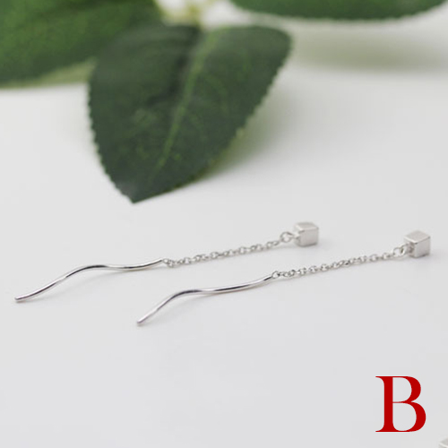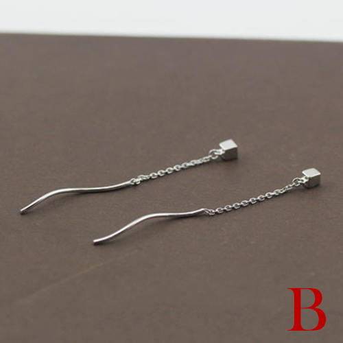 Stylish Silver Tone Pentagram/Cube Curved Alloy Bar Pendant Earrings