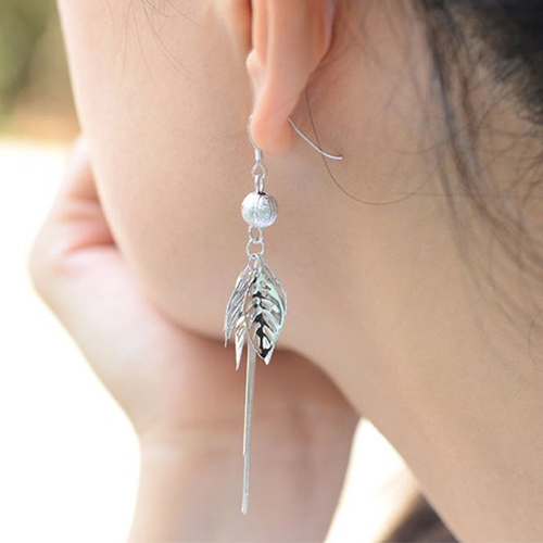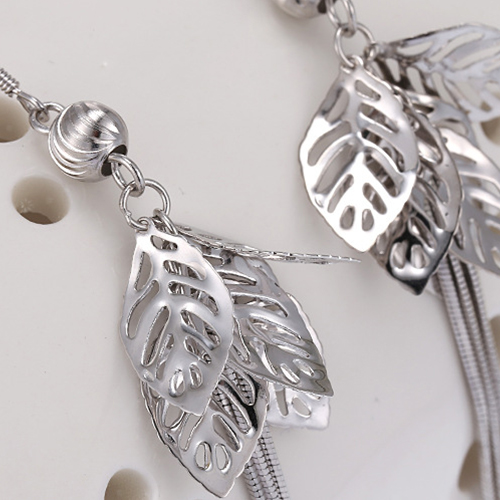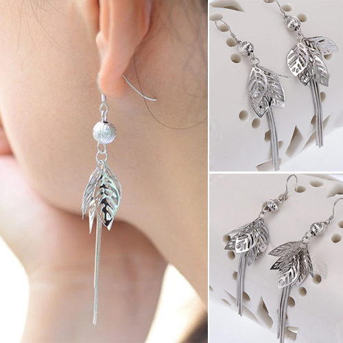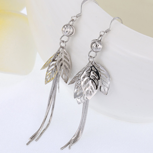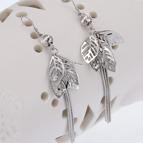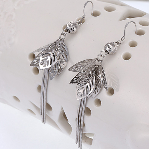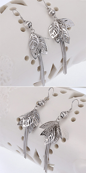 Stylish Silver Tone Tassel Hollow Out Leaves Pendant Earrings