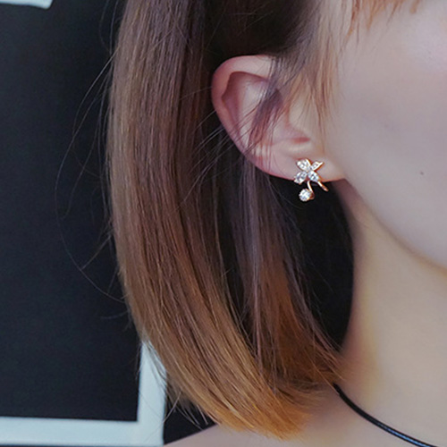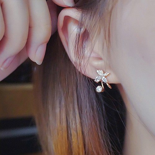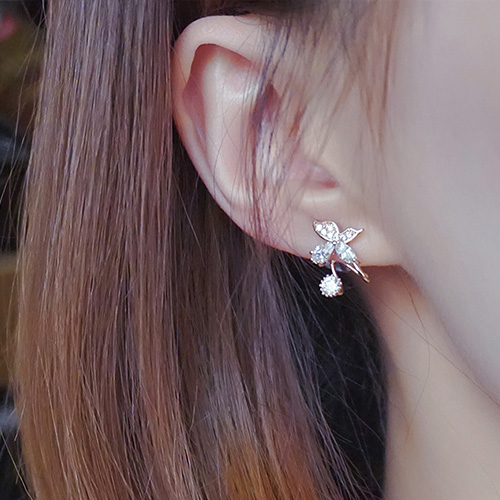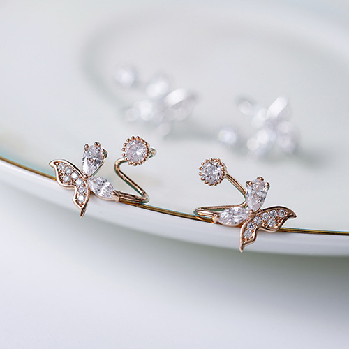 Wait for your sweet love with this pair of chic earrings. It is designed with rhinestone and butterfly