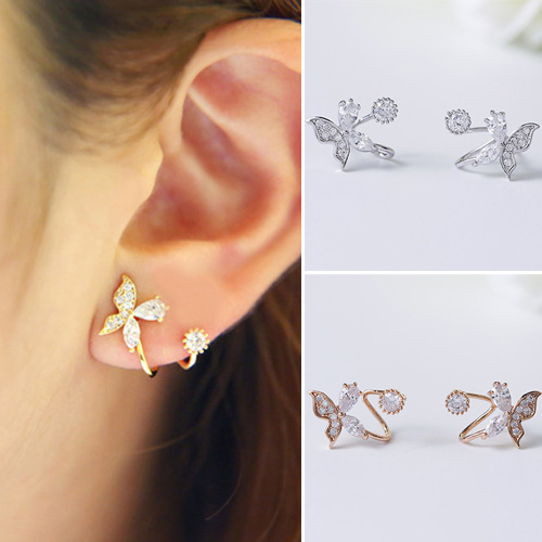 Sweet Style Butterfly Rhinestone Stud Earring Ear Clip