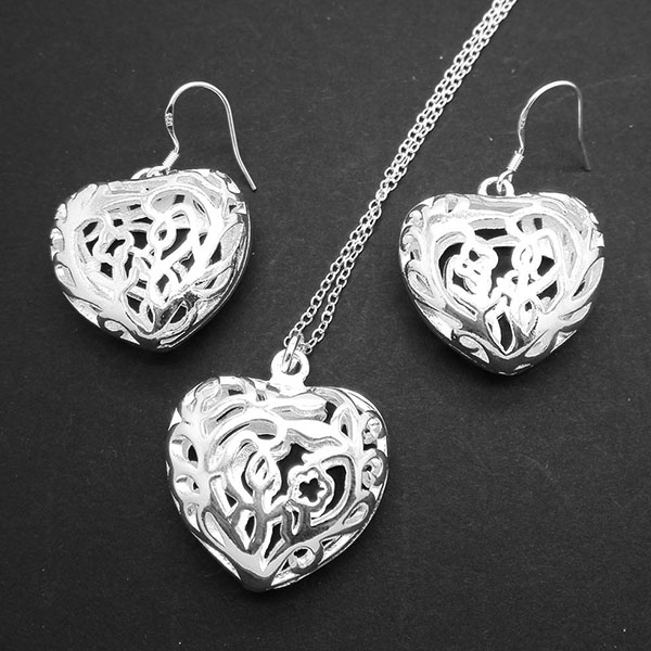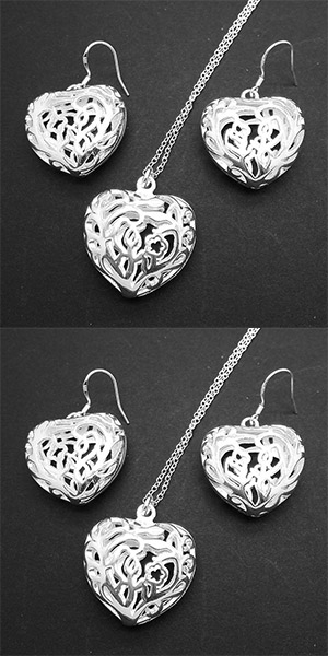 It consists of a pair of earrings and a necklace,the hollow out heart pendant design enhances the charm.