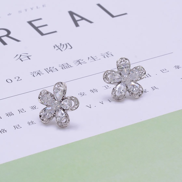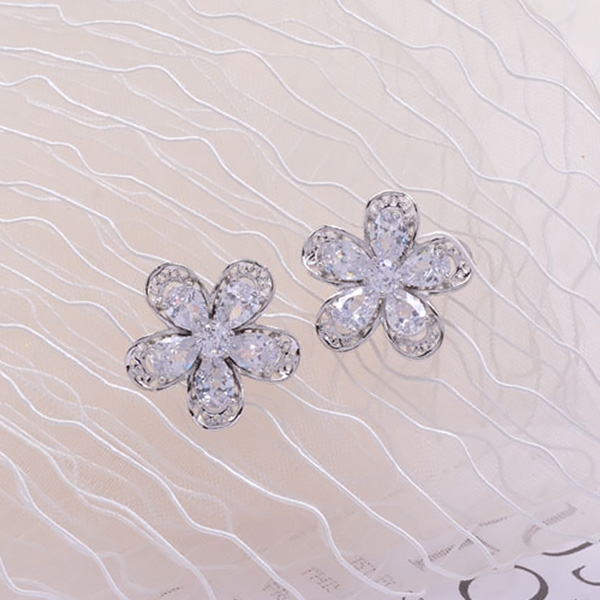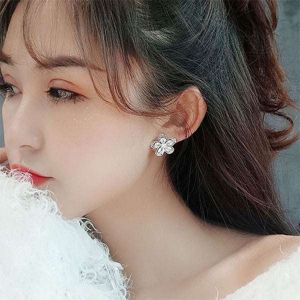 Sweet Style Rhinestone Flower Shaped Stud Earrings