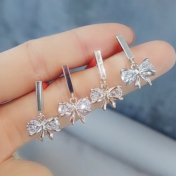 Sweet Style Rhinestone Inlaid Bowknot Shaped Stud Earrings