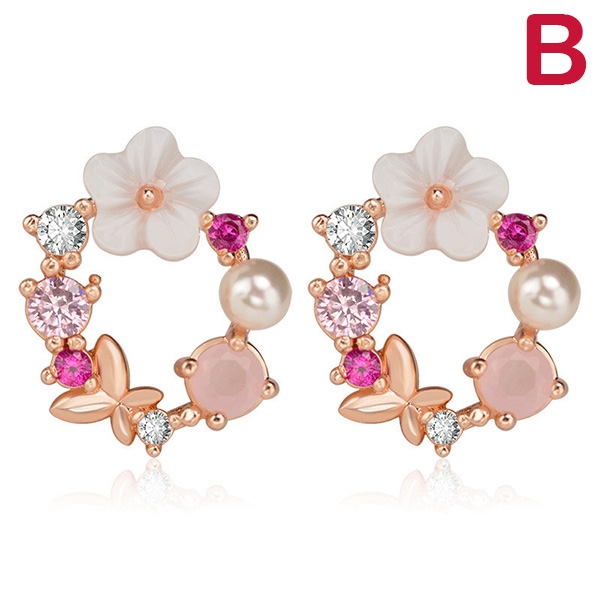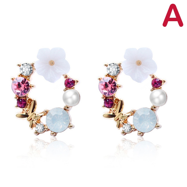 Sweet Style Rhinestone Inlaid Wreath Shaped Stud Earrings