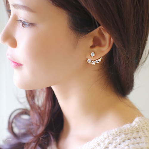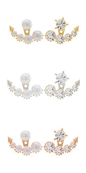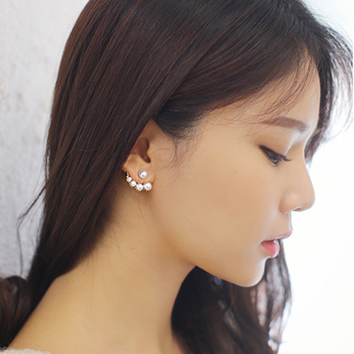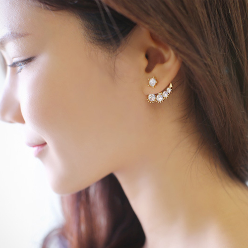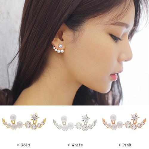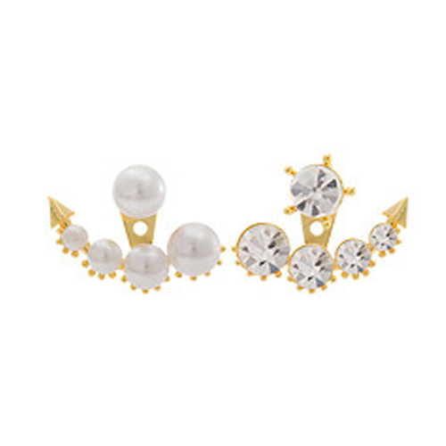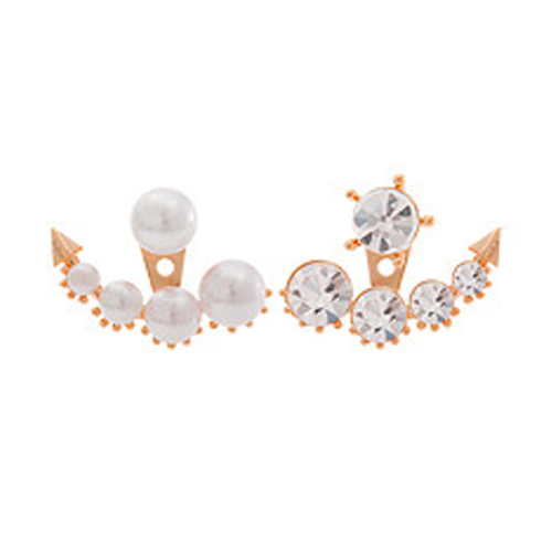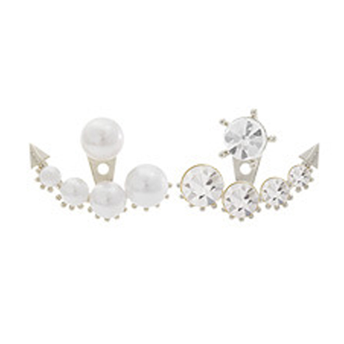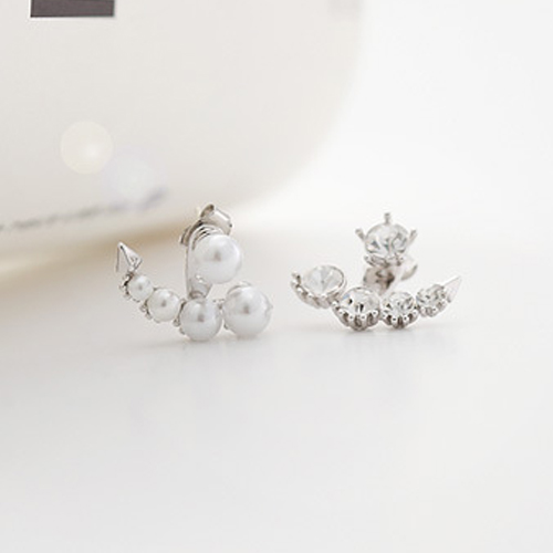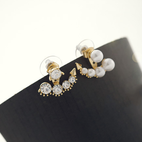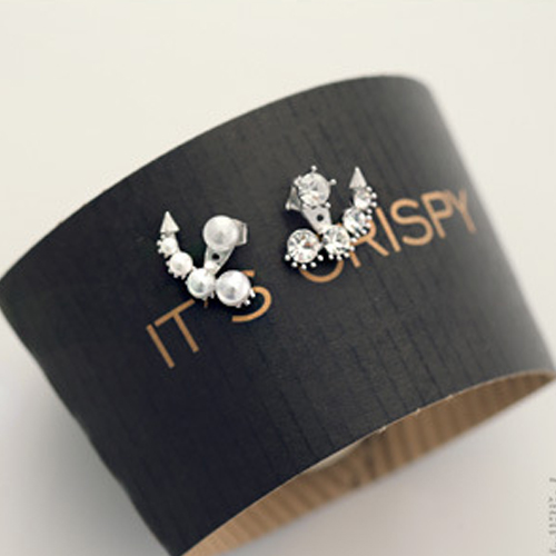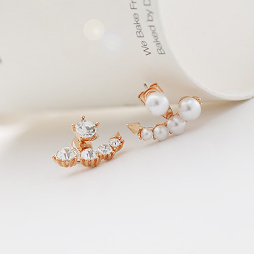 Unique Fashion Rhinestone Pearl Asymmetry Backear Earring