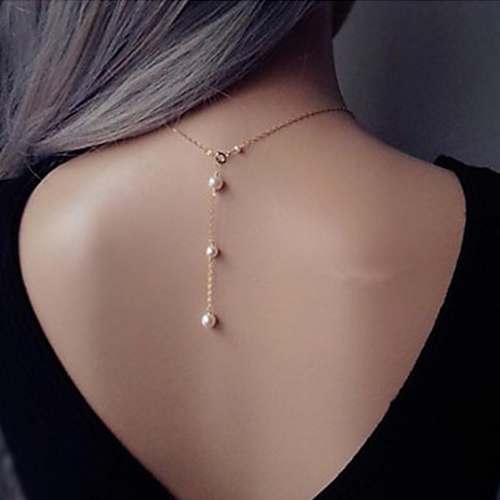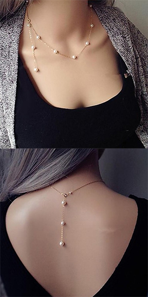 features faux pearl, thin chain and a lobster clasp. You could use either buy