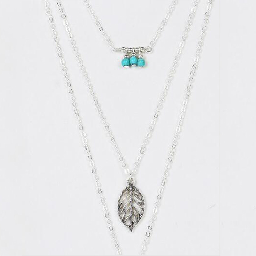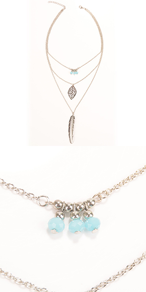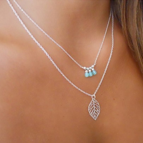 Multilayer design,with leaf,feather and beaded pendant,chic and stylish.