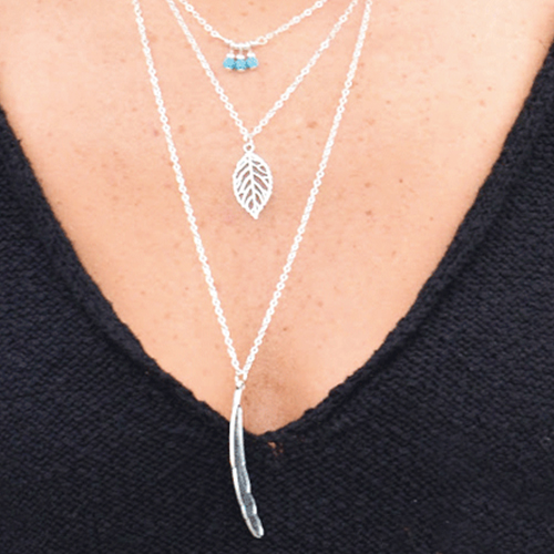 Fashion Feather Leaf Pendant Multilayer Necklace