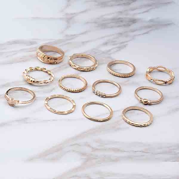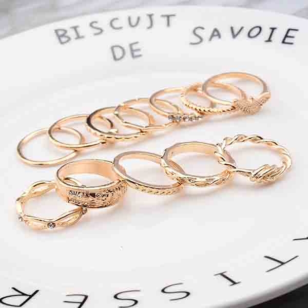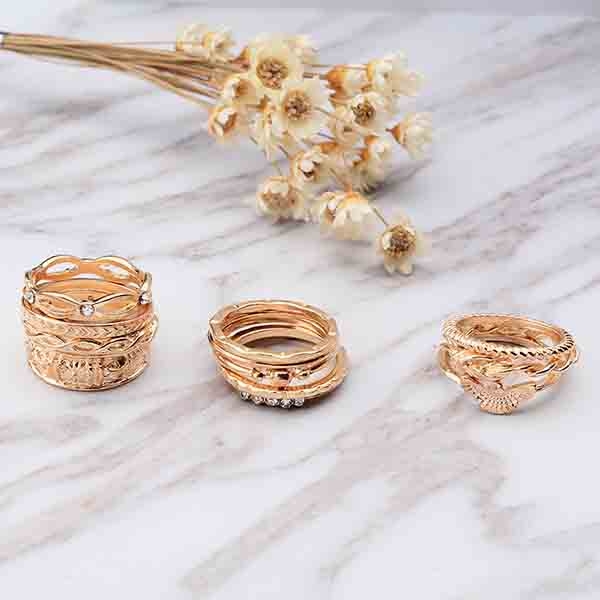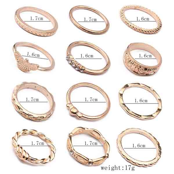 This ring set comes with a classic yet stylish gold tone,including 12 pieces different rings,which can embellish
