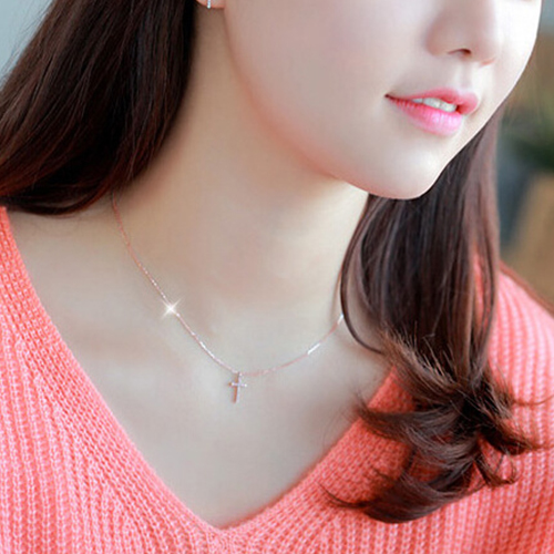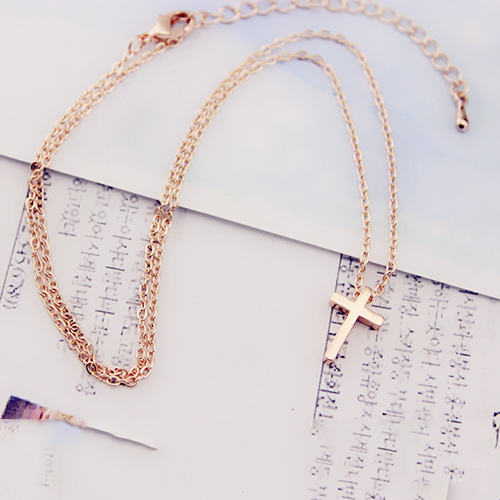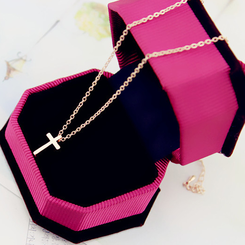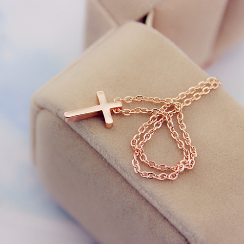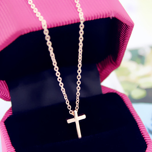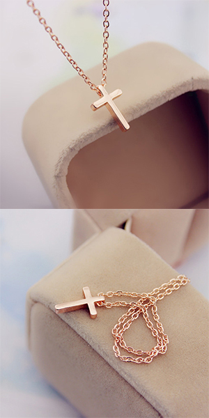 This gold-tone necklace features a cross pendant,simple and chic. It will add some