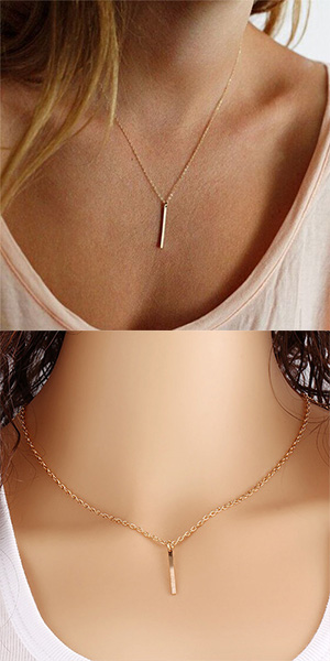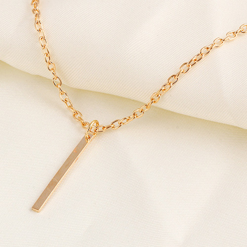Gold-tone necklace,with a metal stick pendant,simple and chic. Shine on