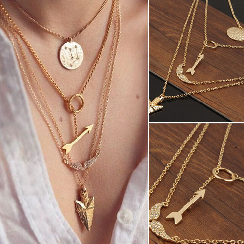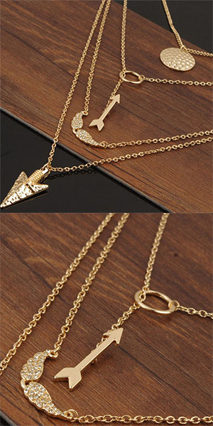Multi-layer style,decorated with angel wings and arrow pendant,chic and stylish.