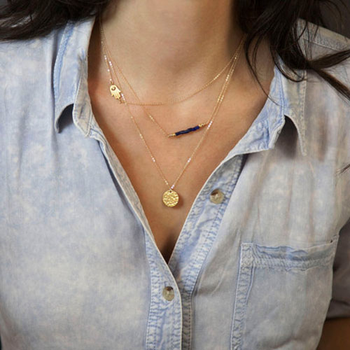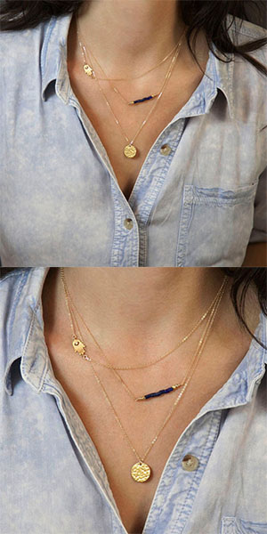 Multi-layer design,with different pendants. Add it to your fashion accessories collection.