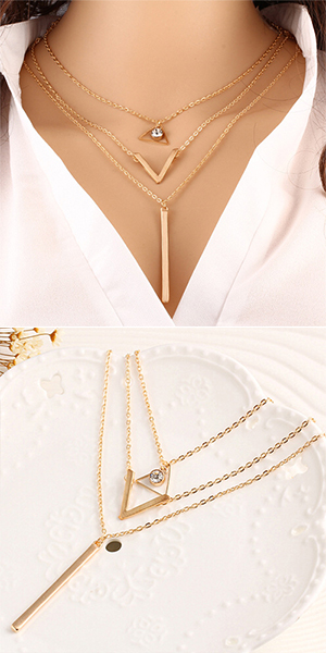 This gold-tone necklace features multilayer design,chic and stylish. When wearing