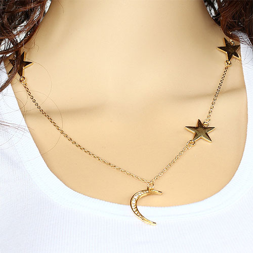 Fashion Gold-tone Stars Moon Pendant Necklace
