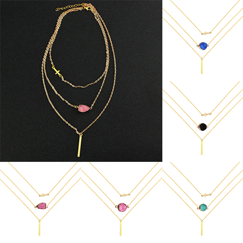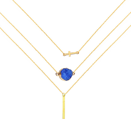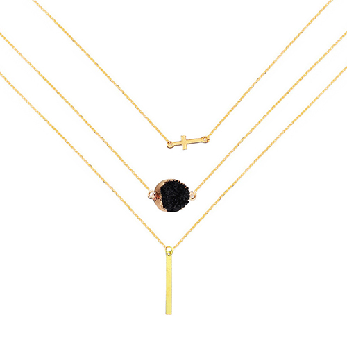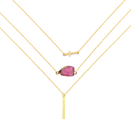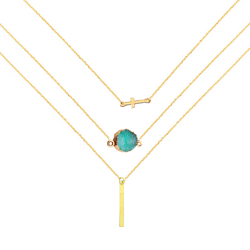 This gold-tone necklace will be the highlight of your outfit! Three-layer design,with three different pendants,chic