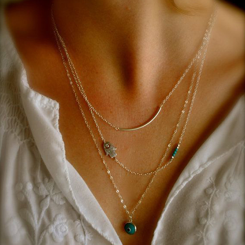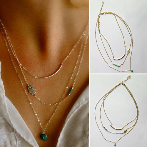 Fashion Hamsa Hand Evil Eye Pendant Multi-layer Necklace