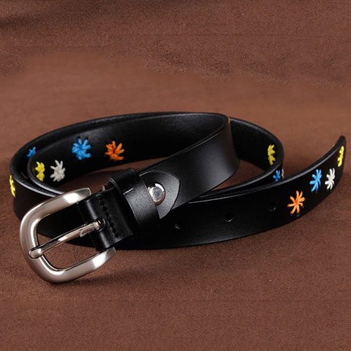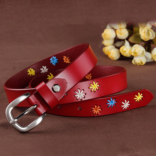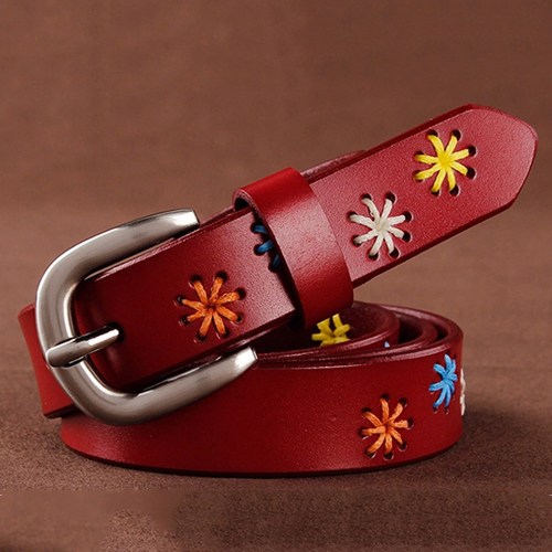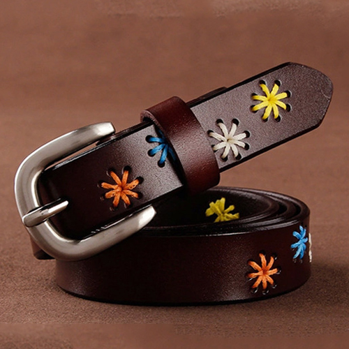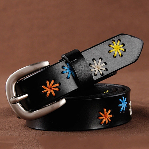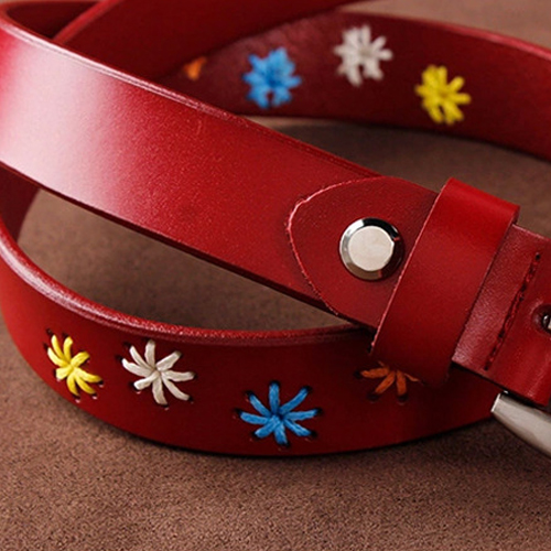 Fashion Hand-knitted Flowers PU Leather Waistband