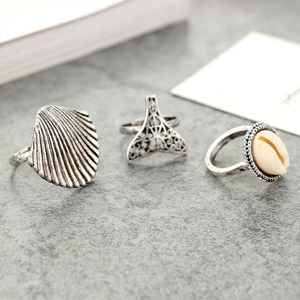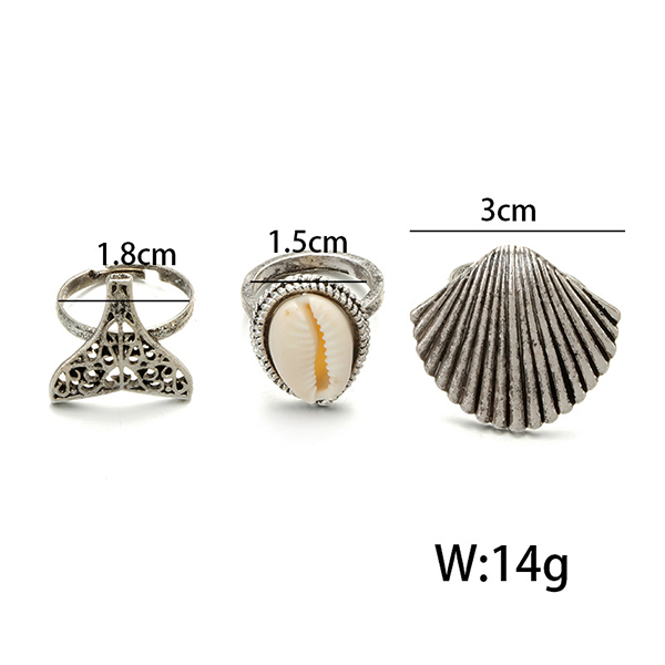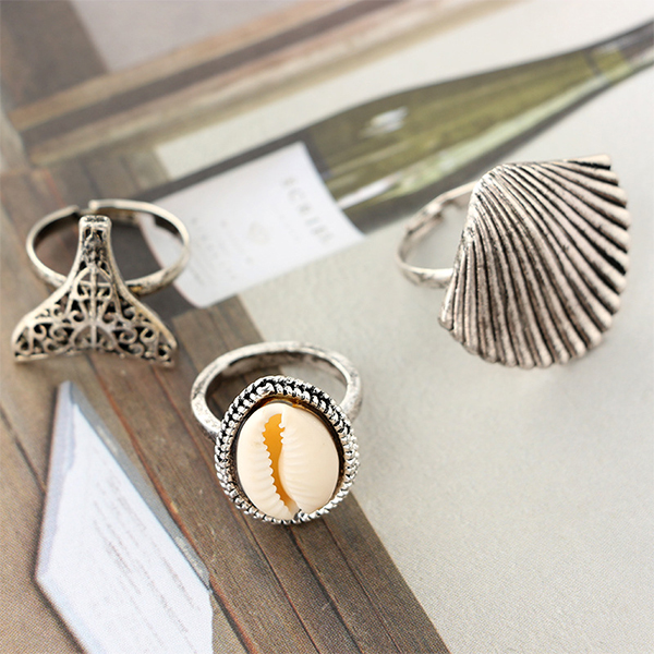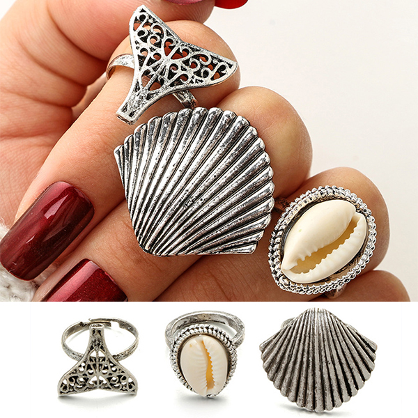 This ring set consists of 3 piece different rings:two alloy rings and one shell ring.It is good to decorate your