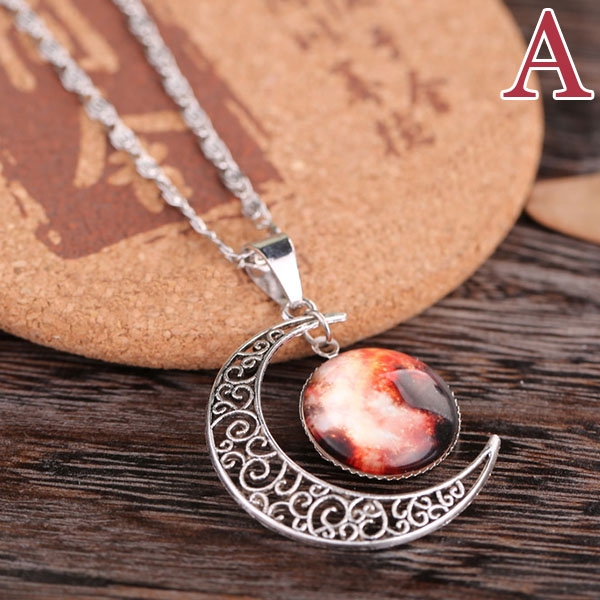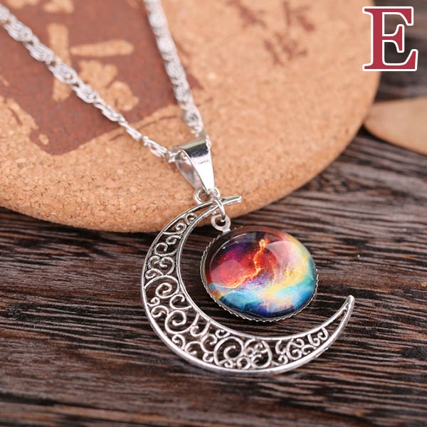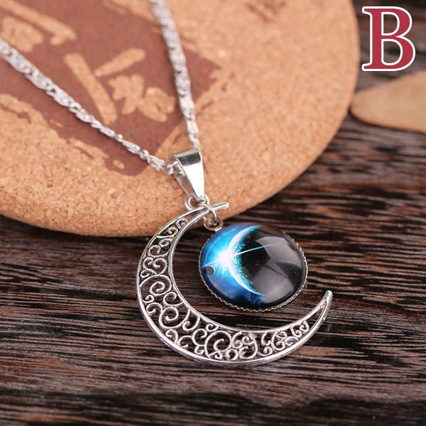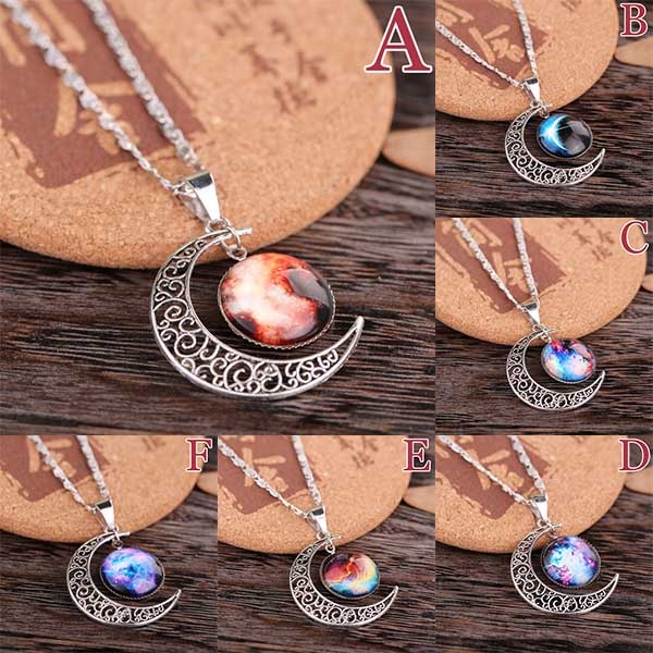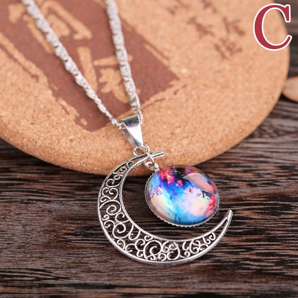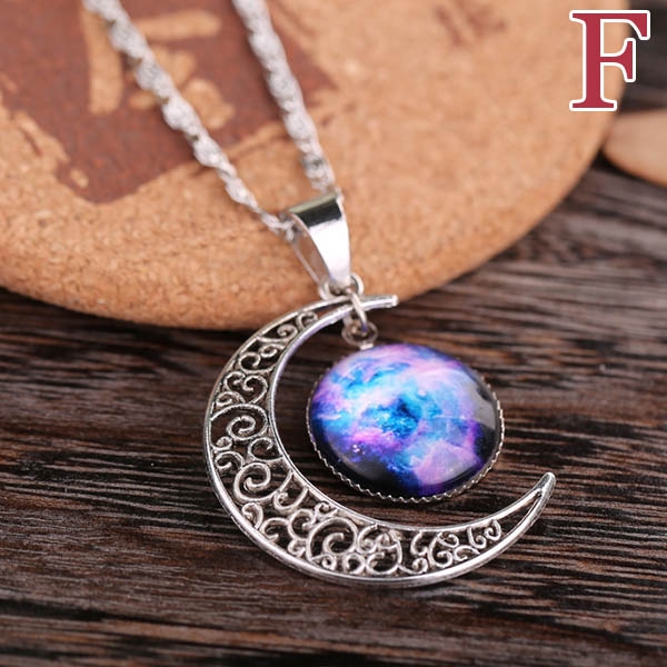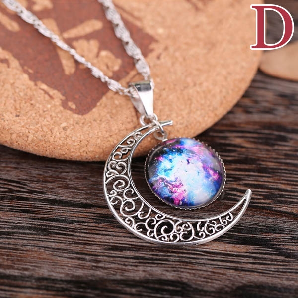 Fashion Hollow Out Crescent Starry-sky Gem Pendant Necklace