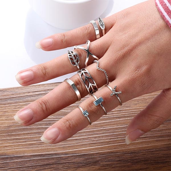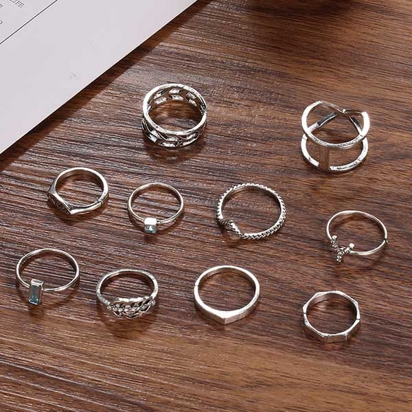 This ring set comes with a classic yet classic silver tone,including 10 piece different rings,designed