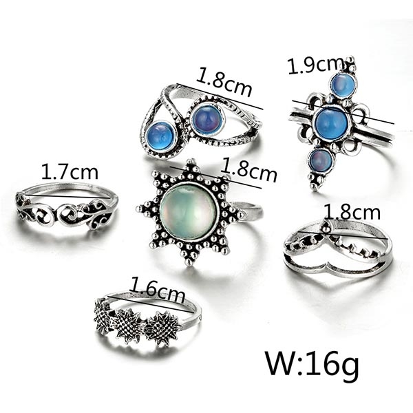 Fashion Imitation Gem Inlaid Ring Set 6 pcs/Set