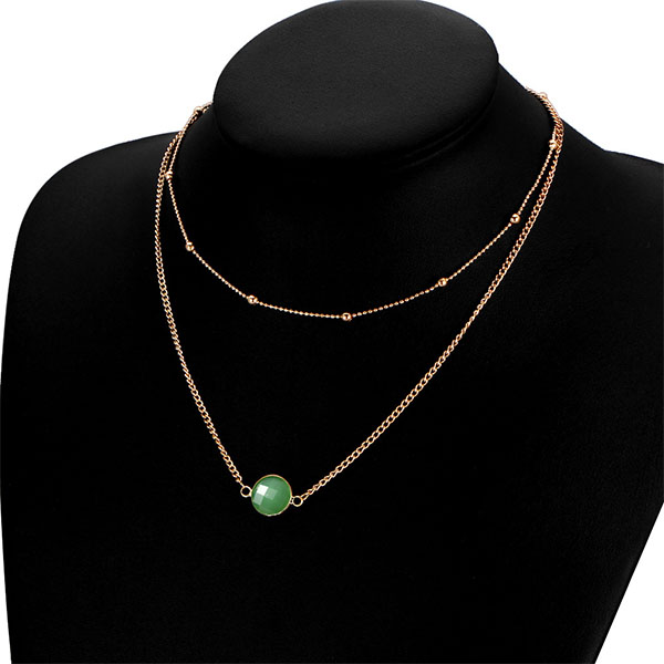 Fashion Imitation Gem Pendant Double-layer Necklace