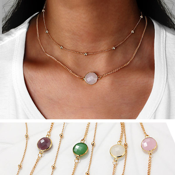 Double-layer style,designed with a imitation gem pendant,simple,chic. So if you wanna showcase your charming neck,