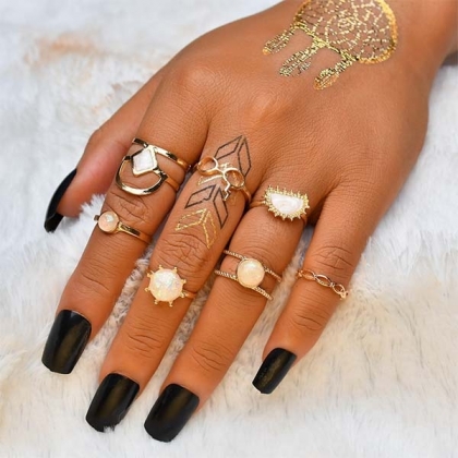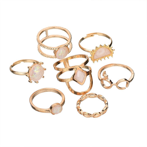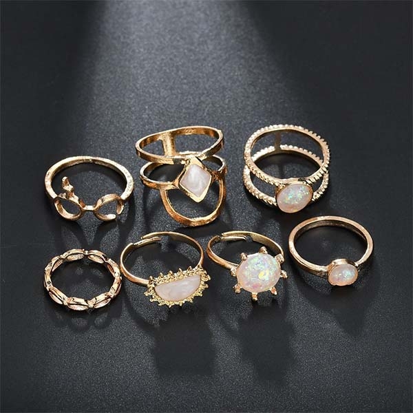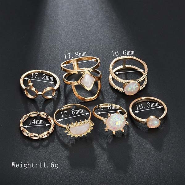 This ring set consists of 7 pieces different rings,the imitation opal inlaid design will make it look more attractive.