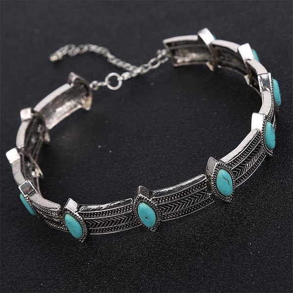 Fashion Imitation Turquoise Inlaid Alloy Choker