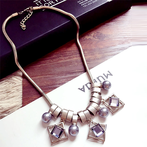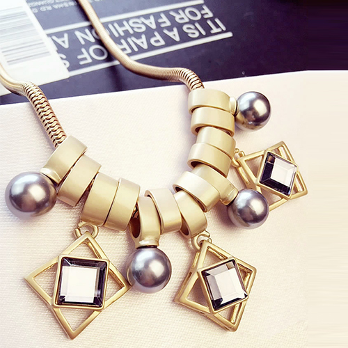 Fashion Irregular Faux Pearl Gem Charms Necklace