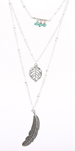 Your style is on point when you wear this necklace! Multilayer design,with leaf,feather and beaded