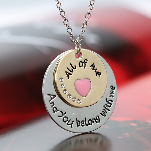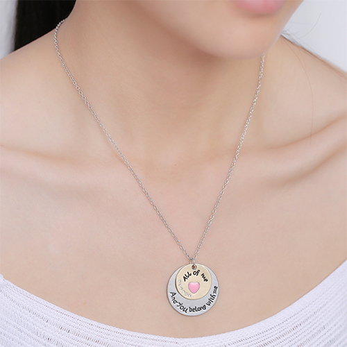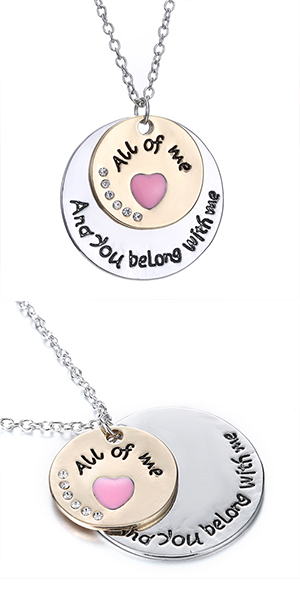 This necklace is a perfect gift for your lover. Its pendant is engraved with letters