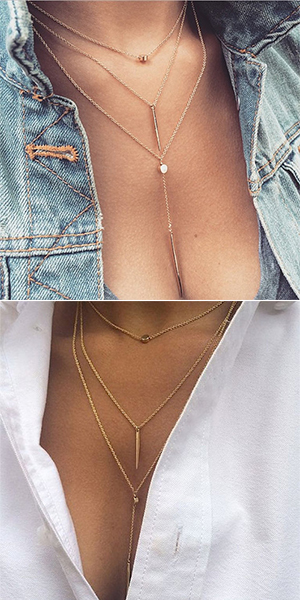 Enjoy the timeless fashion that this necklace offers! Multilayer style,with metal stick pendant,simple,chic