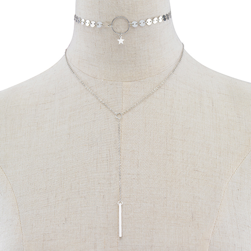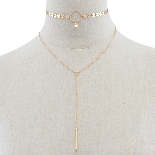 Fashion Metal Stick Tassel Pendant Gold/Silver-tone Necklace